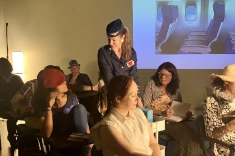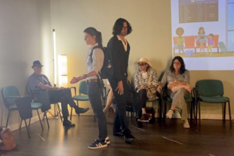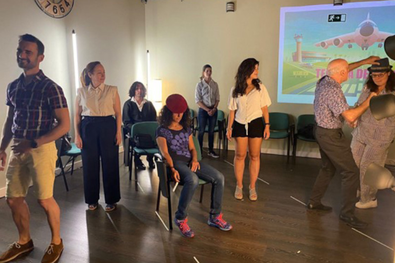 El 29 de junio de 2022, estrenamos en Ipsimed nuestra muestra de fin de curso del taller de Teatro Terapéutico. La obra, llamada ‘Terapia de choque‘, fue creada a partir de improvisaciones. Cada actor desarrolló un personaje desde su anti-rol, muy alejado de sí mismo, y proyectando muchos retos para salir de su ‘espacio seguro’. De aquí surgió una creación colectiva en la que unos personajes deciden coger un avión para darle un cambio radical a su vida. Para nuestros alumnos actores, fue una experiencia muy productiva, ya que además de disfrutar del proceso creativo, cada uno logró abordar el desafío de emprender un viaje hacia el desbloqueo corporal, el crecimiento personal y la transformación.